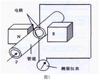 直徑1m管道水流量計的設計是根據法拉*電磁感應定律,導管中導電的流體被看作導體,管道的內徑可看作道導體的長,原理圖如圖1所示,兩電極裝到與管道的中心軸和磁場方向組成的平面相垂直,拾取液體產生的感應電動勢。感應電動勢為: