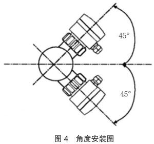 垂直安裝時確保流向由下而上,如圖 4 中箭頭所示,應與管道水平中心線成 45 度角安裝航空煤油流量計。